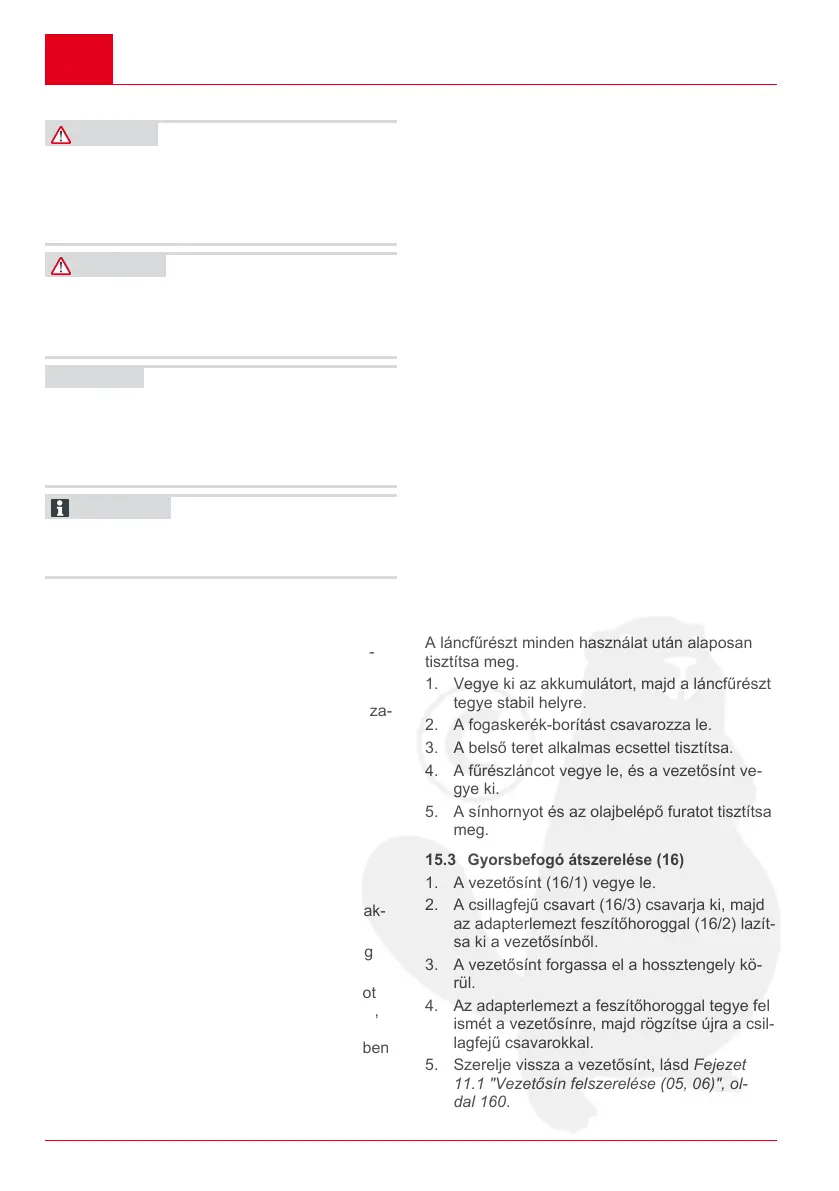 1. A láncfűrészt kapcsolja ki és vegye ki az ak-