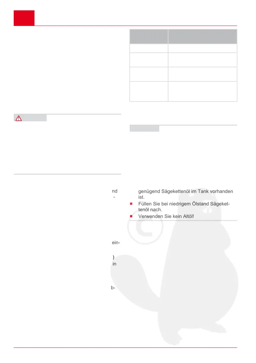 Füllen Sie bei niedrigem Ölstand Sägeket-