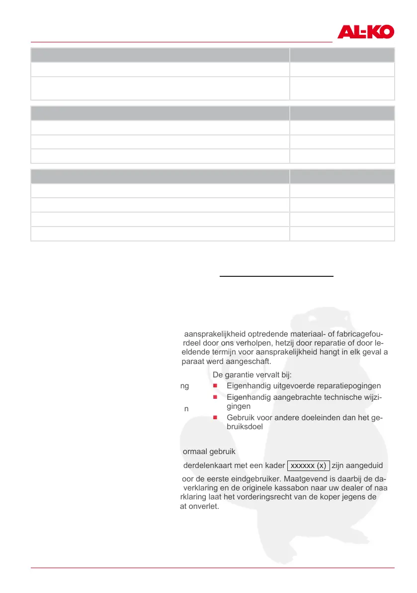 tum op de kassabon. Ga met deze garantieverklaring en de originele kassabon naar uw dealer of naar