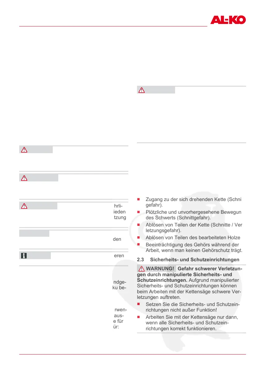 beim Arbeiten mit der Kettensäge schwere Ver-