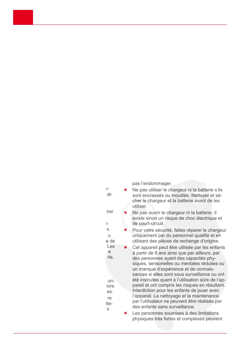 Ne pas utiliser le chargeur ni la batterie s’ils