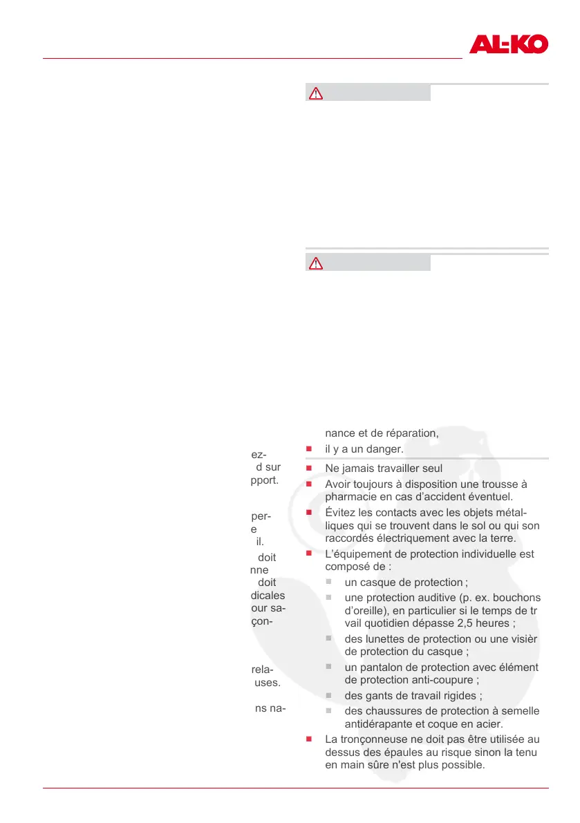 La tronçonneuse ne doit pas être utilisée au-