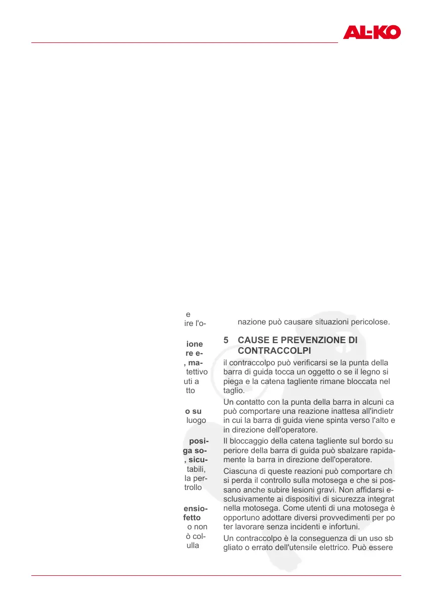 si perda il controllo sulla motosega e che si pos-