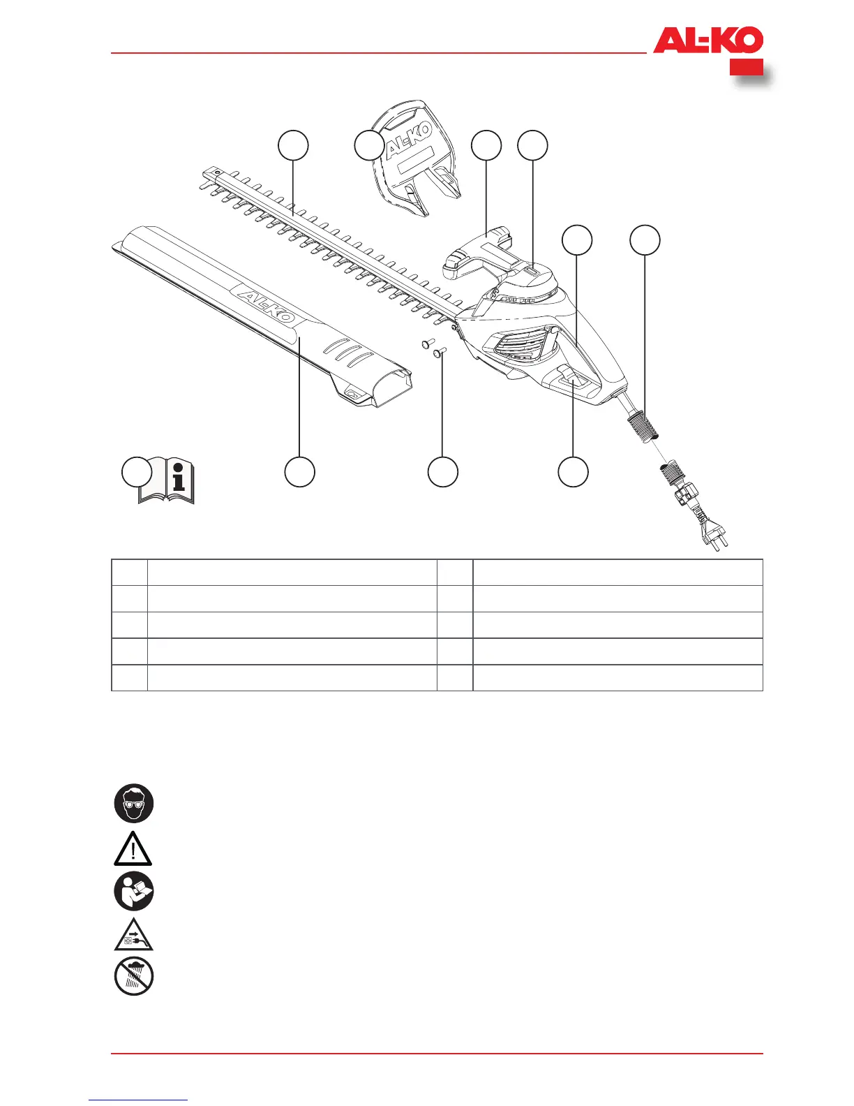 3 Grijpbeugel met schakelknop vooraan 8 Schroeven voor montage handbescherming