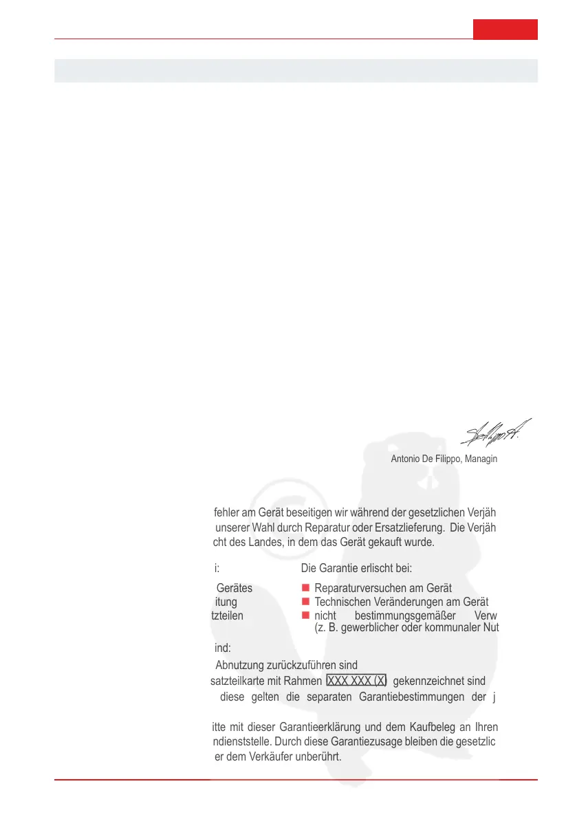 oder die nächste autorisierte Kundendienststelle. Durch diese Garantiezusage bleiben die gesetzlichen Män-