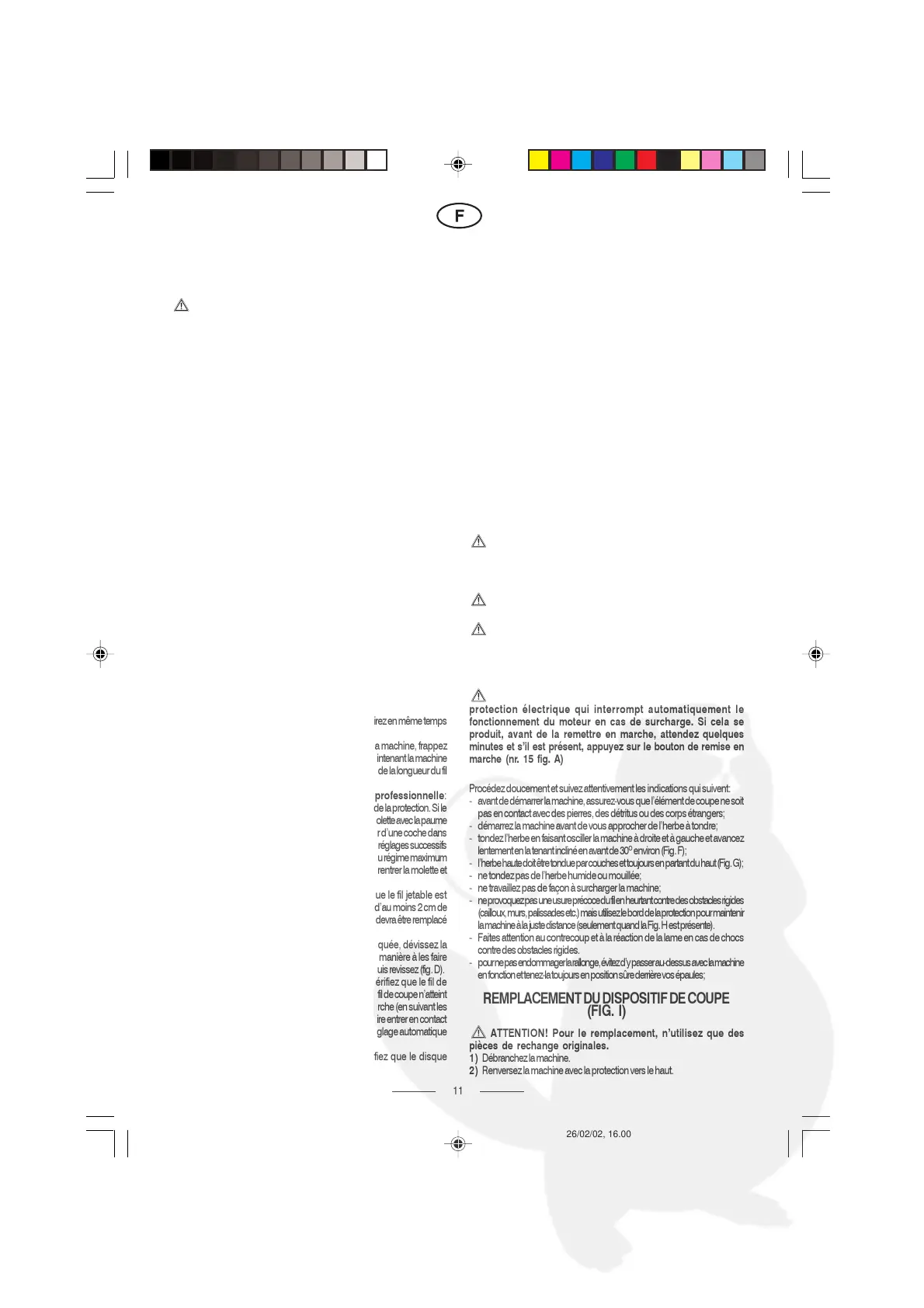 ATTENTION! Nutilisez pas la machine sans protection (si