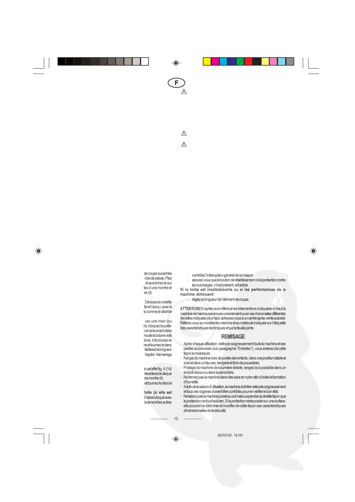 - A la fin de la saison dutilisation, la machine doit être nettoyée soigneusement