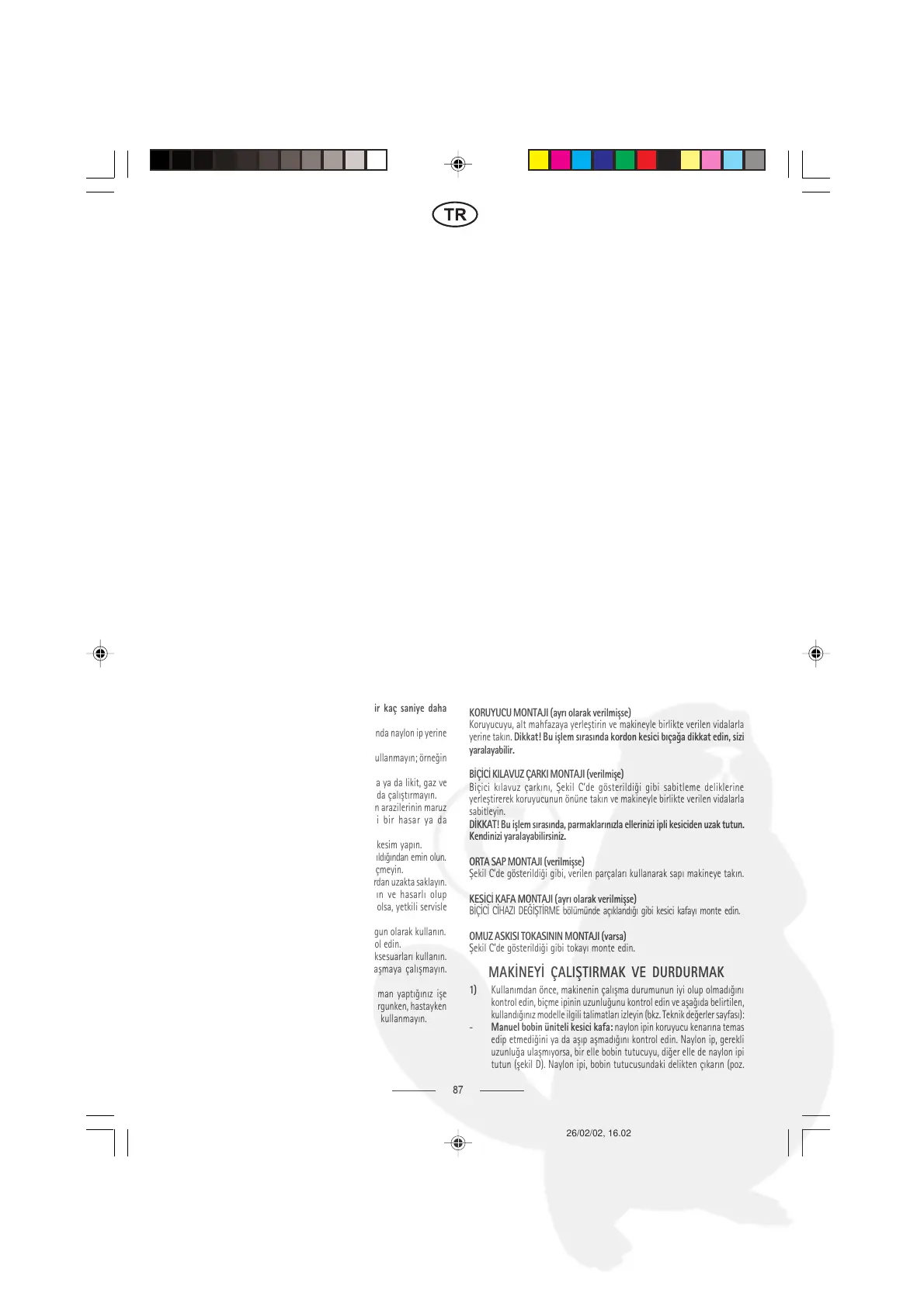 7) Motor baþlatýlýrken ve makine çalýþýrken, kesici bölümü, gövdenizden,