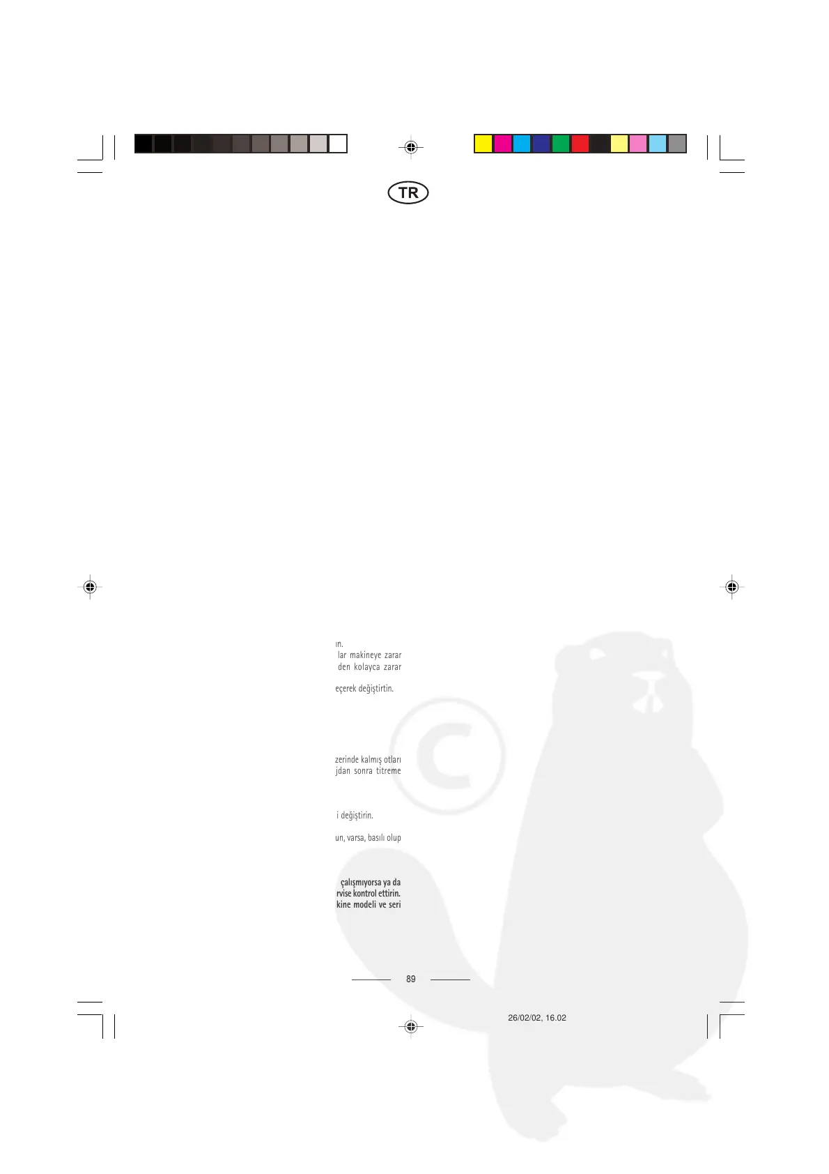 - Kesme sezonunun sonunda, makineye tam bir temizlik uygulanmalý ve