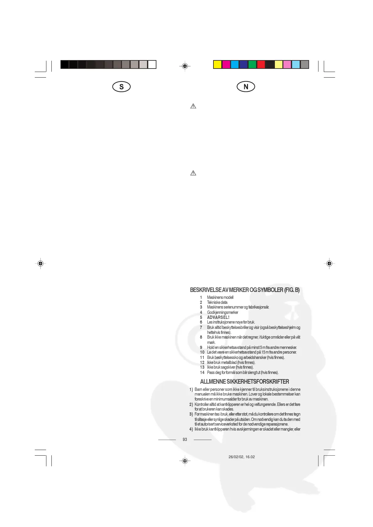 BESKRIVELSE AV MERKER OG SYMBOLER (FIG. B)