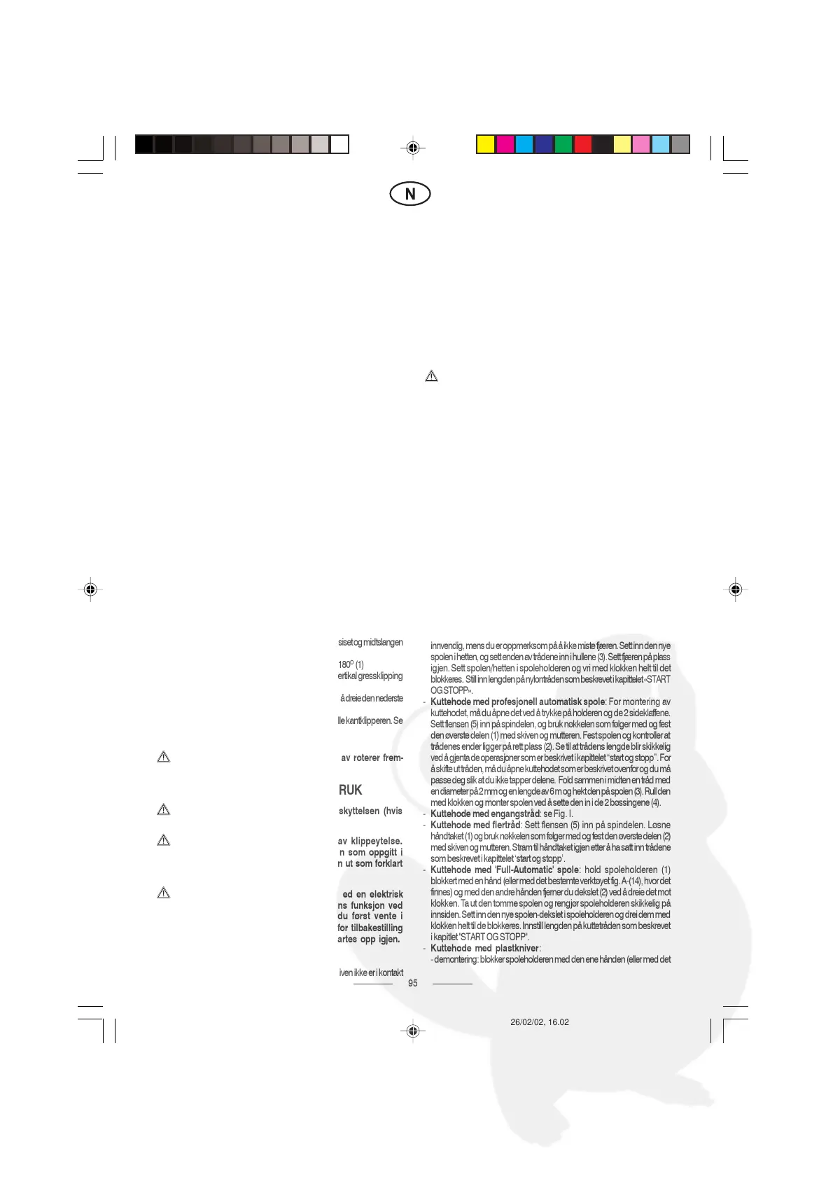 kapittelet «START OG STOPP», eller skift tråden ut som forklart
