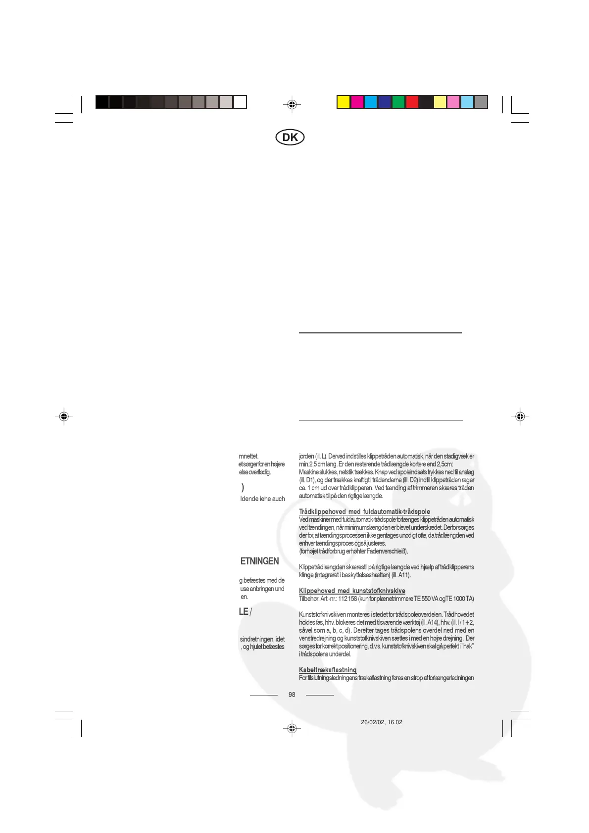 jorden (ill. L). Derved indstilles klippetråden automatisk, når den stadigvæk er