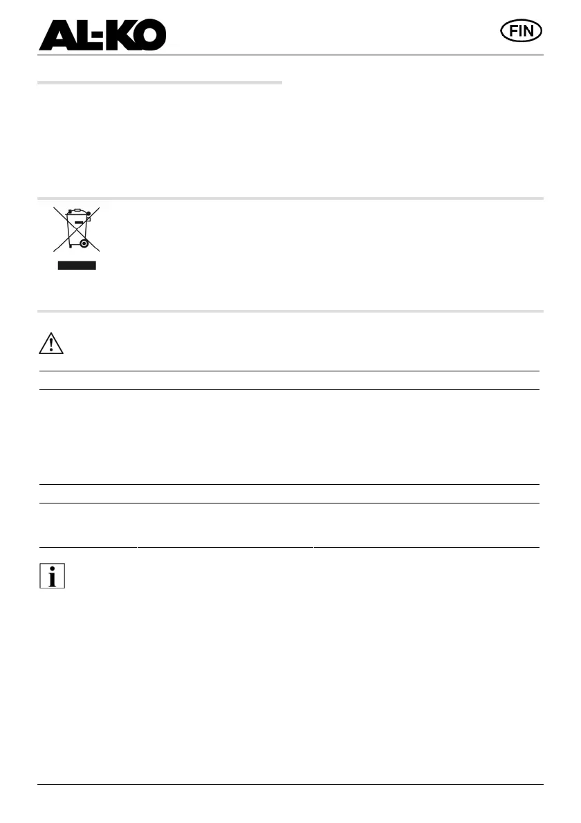 Koneita, joita ei enää käytetä, ei saa hävittää talousjätteen mukana.