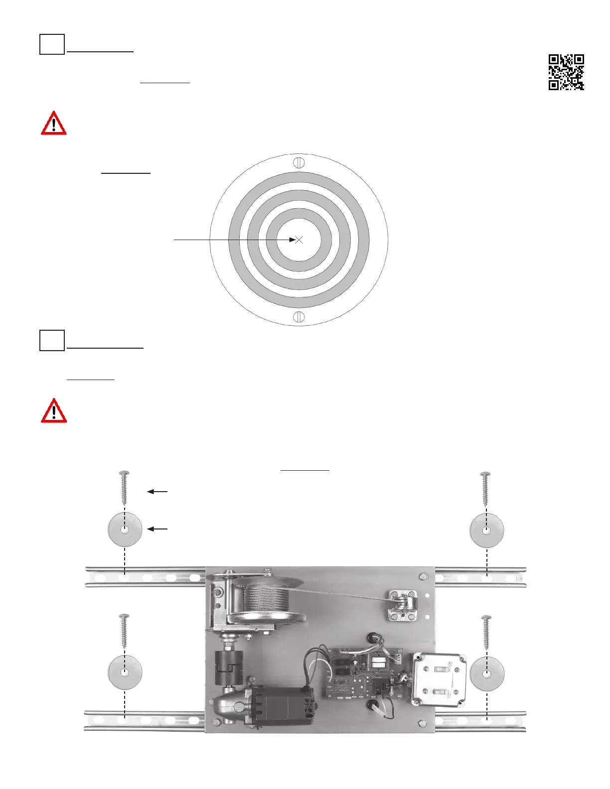Shim and adjust ALL200 so that winch cable hangs plumb through center of hole in top contact plate on