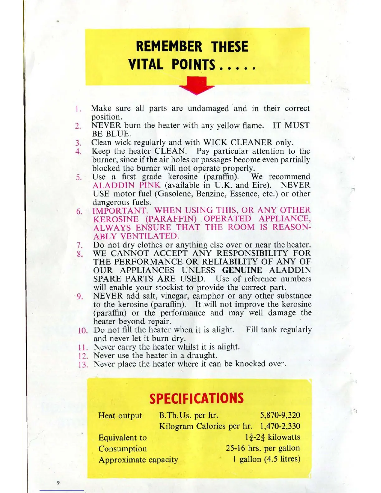 KEROSINE (PARAFFIN) OPERATED APPLIANCE,