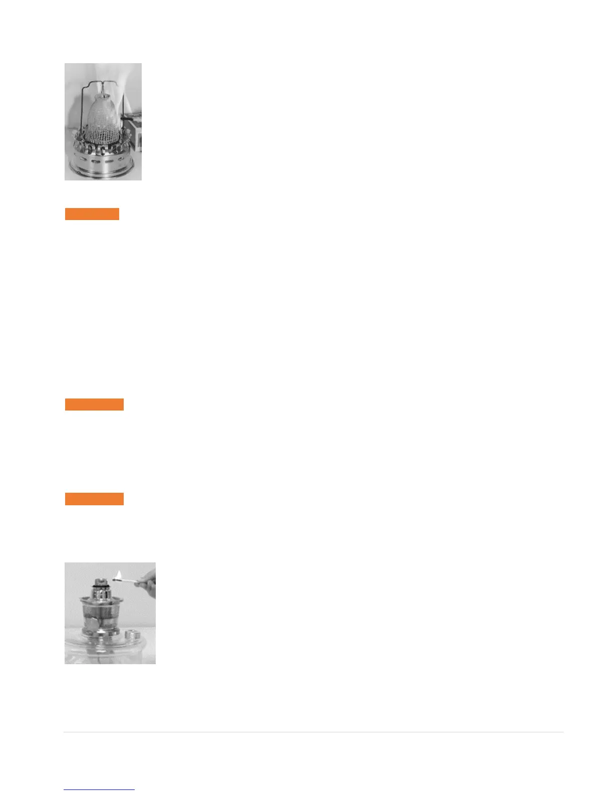 11. Allow the lamp base and burner base assembly to soak for one hour or until the wick is saturated with fuel.