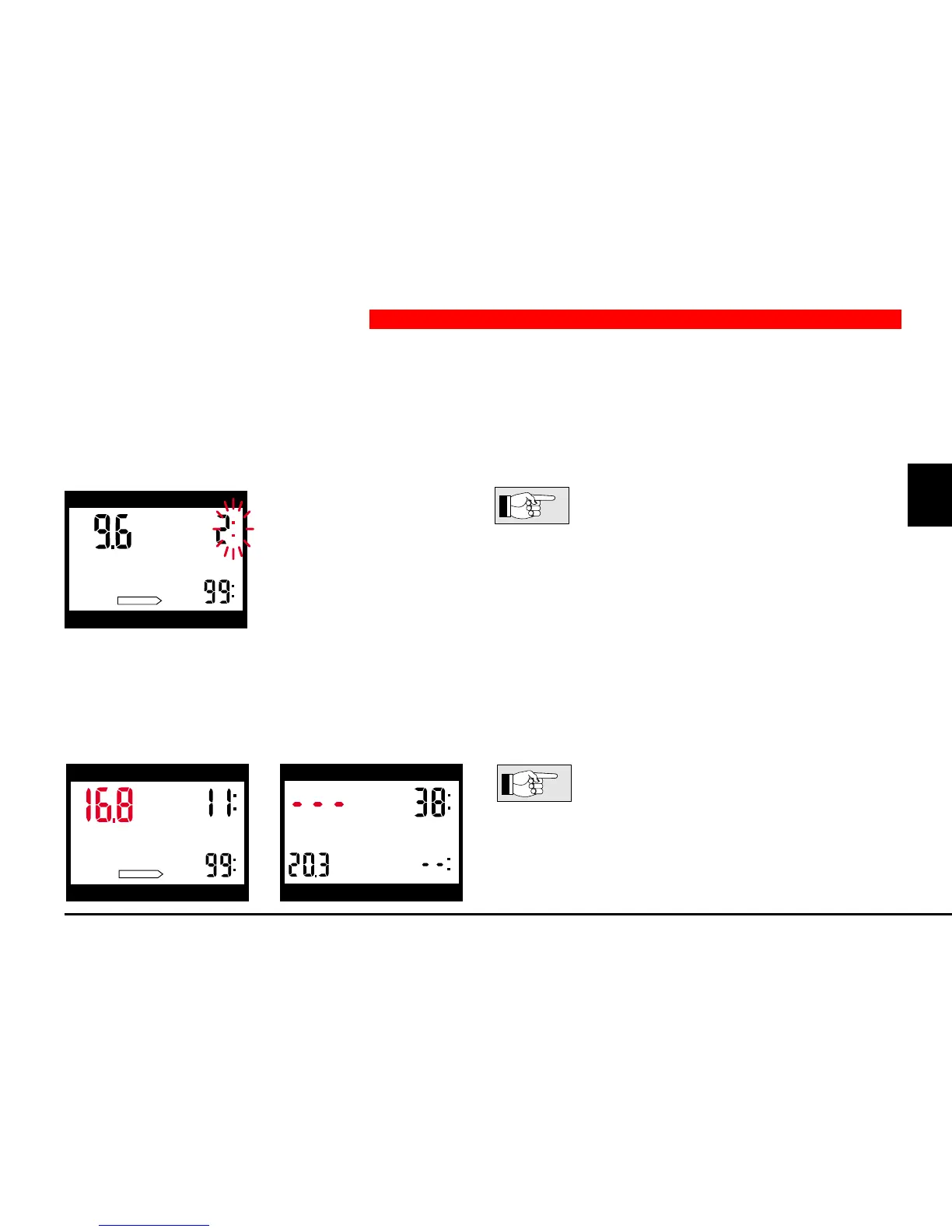 Current depth is given in 10 cm increments. On switching on and at a diving depth of less than 0.5 m the void