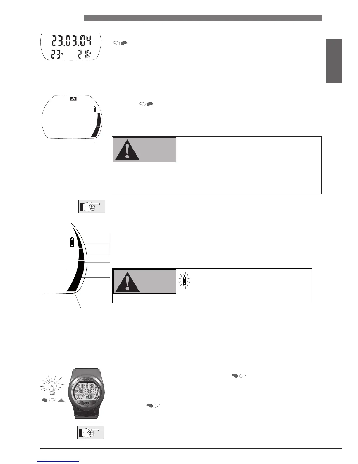 drop to 3 segments during the dive. If this is the case, the backlight will be tempo-