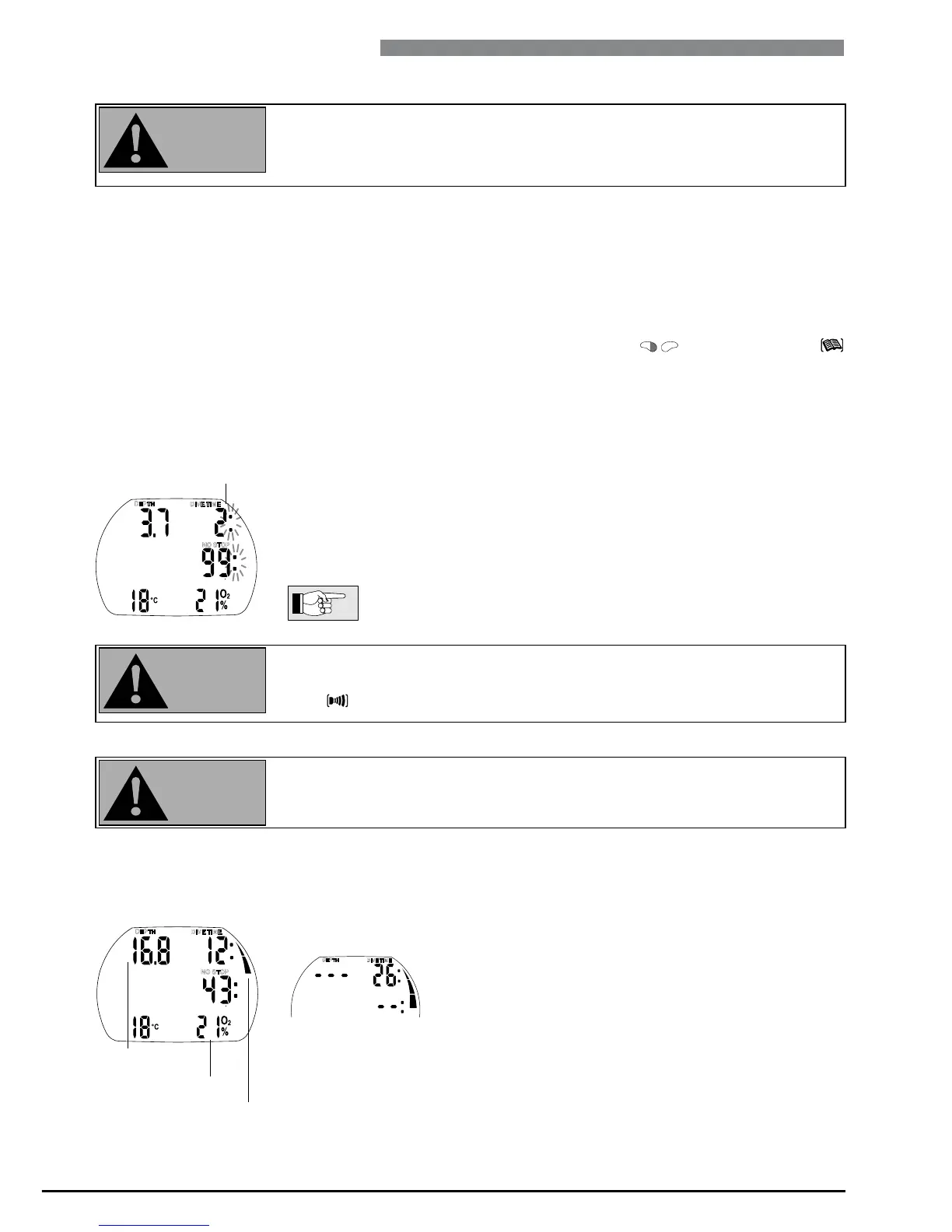 After immersion, starting at a depth of about 0.8m (3ft), all diving functions are monitored, i.e. depth and