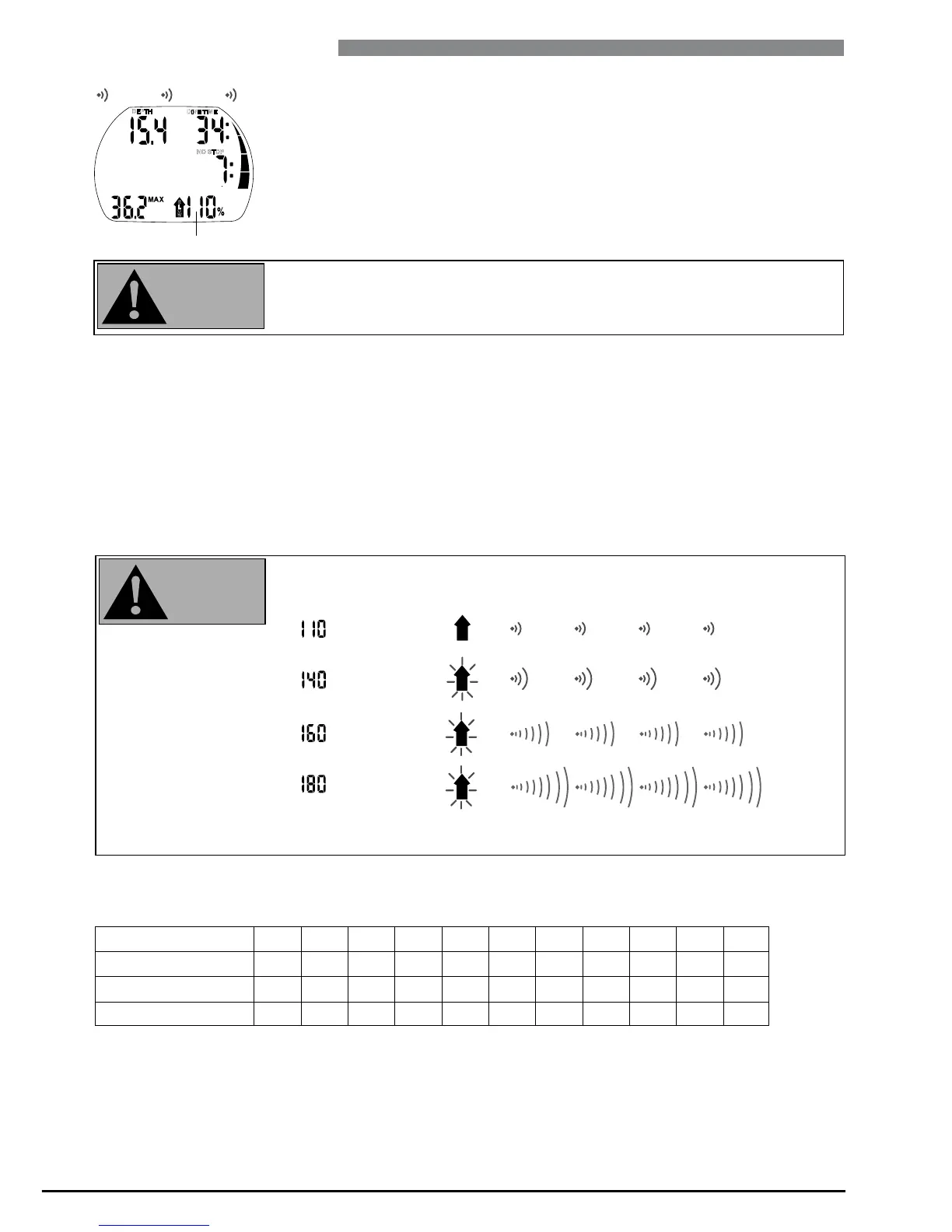 rate. If the ascent rate is greater than 100% of the set value, the black arrow