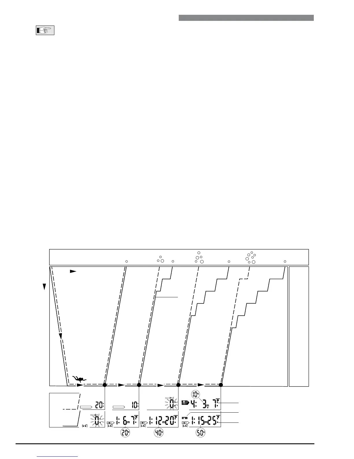 Similar to the display of information during decompression dives or dives within no-stop time,