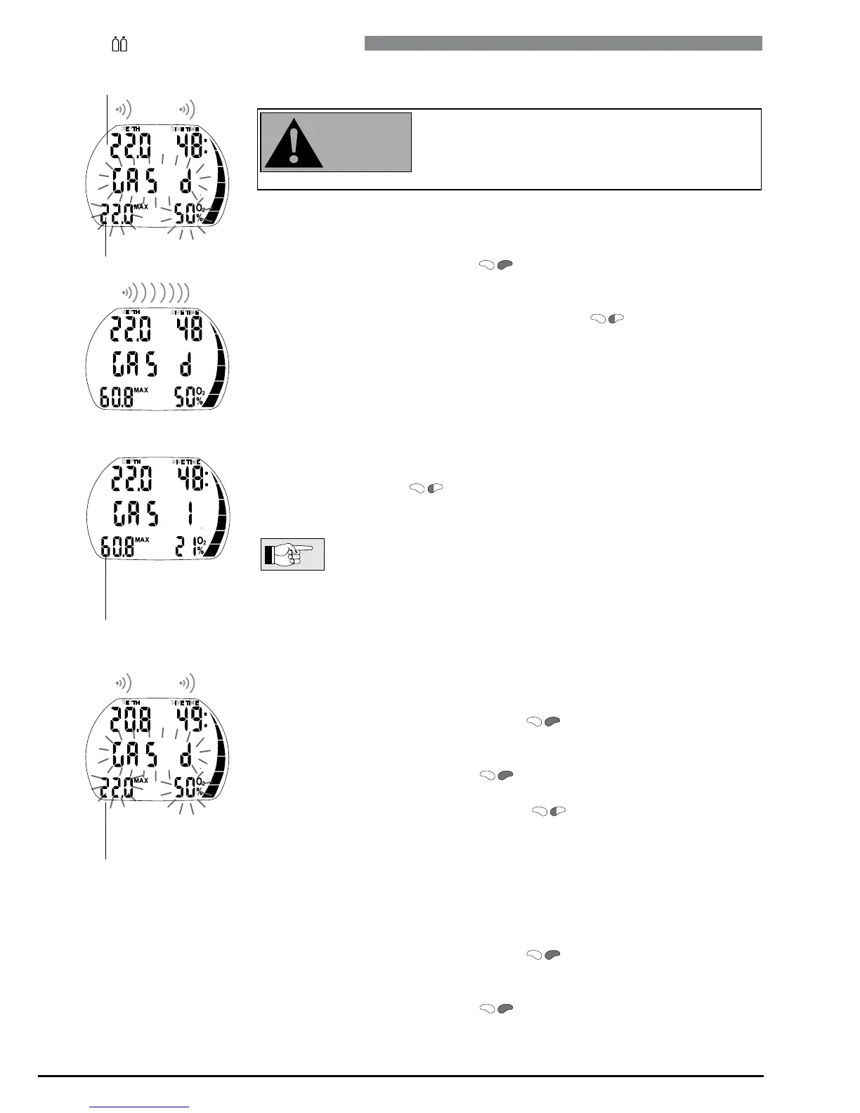 procedure by pressing , Aladin displays "GAS 1", the MOD and the oxy-