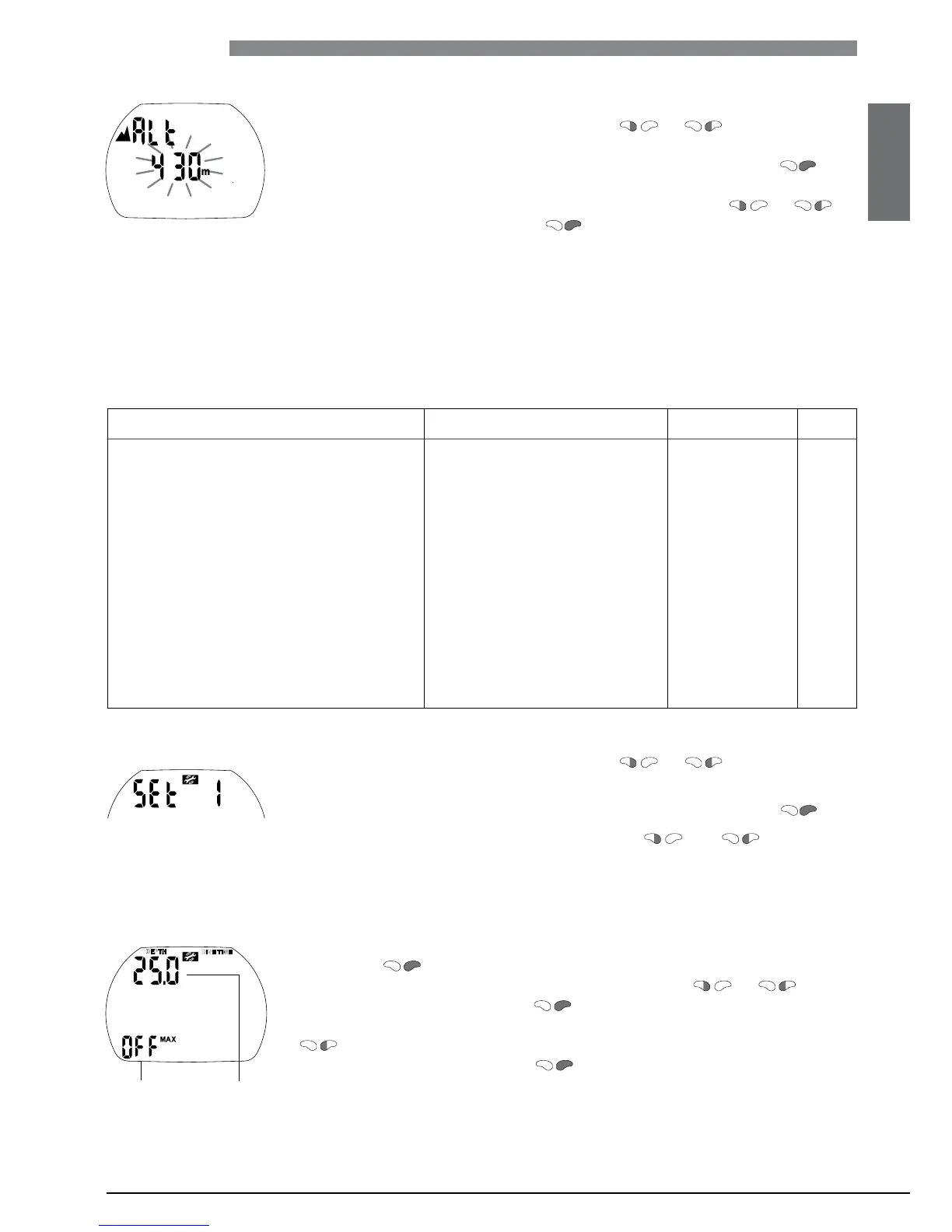 2. Change the depth in increments of 1 m/5 ft by pushing or .
