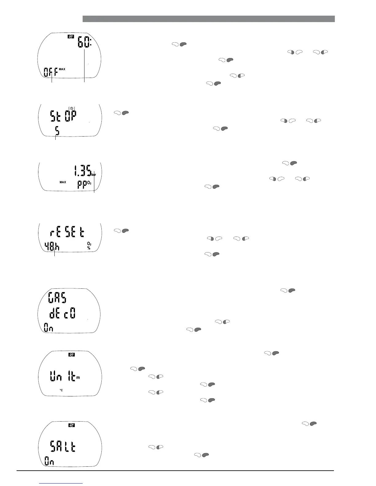 1. Confirm that you wish to change the time of the dive time alarm or to switch it