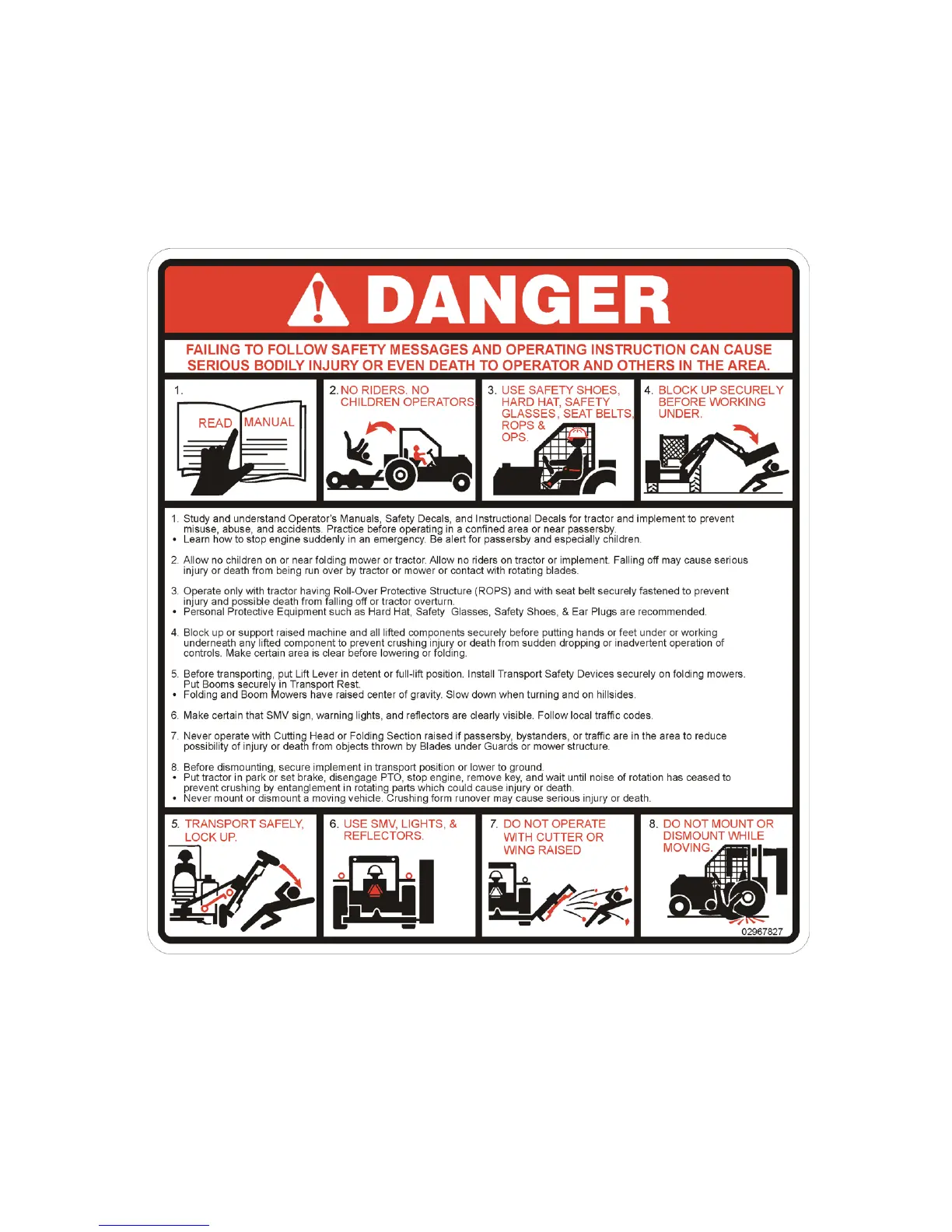 BEFORE YOU START!!Read the safety messages on the implement and shown in your manual. Observe the
