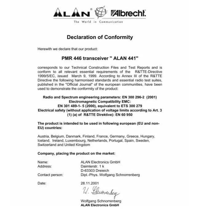 • Frecuencia de trabajo: 446.00625÷446.09375 MHz • Canalización: 12.5 KHz • Nº de canales: 8 •