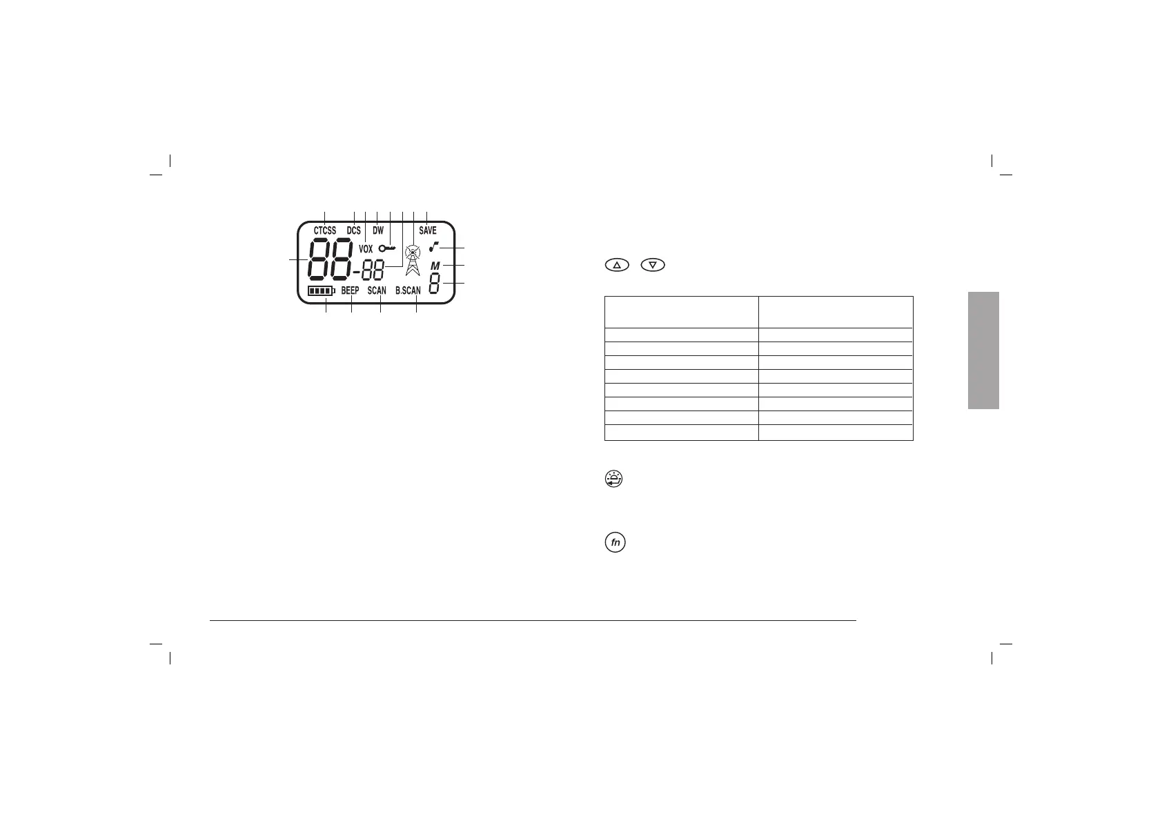 activate the SCAN, B.SCAN,CTCSS, DCS, DW and