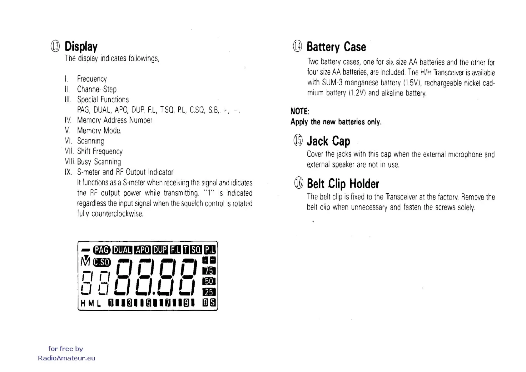 Alan CT-145 - Display; Battery Case; Jack Cap; Belt Clip Holder