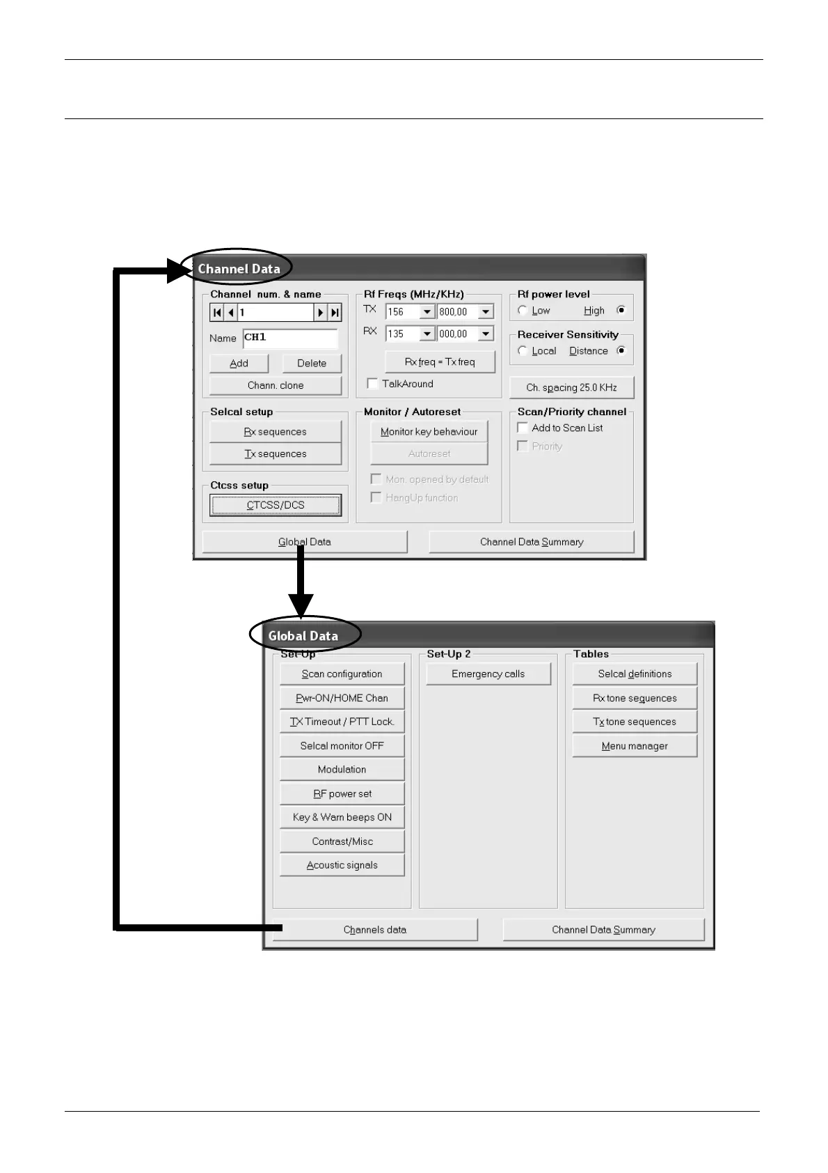 recalled at any time by clicking the Global Data button from the Channel Data window.