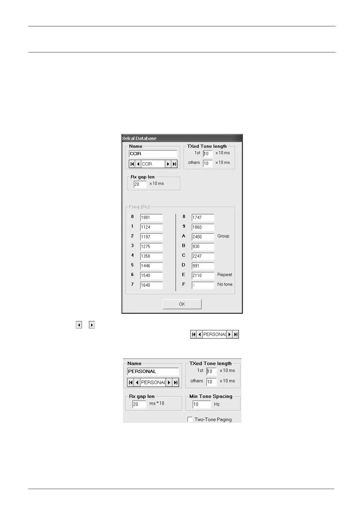 or buttons of the Name area, select the Selcal standard you need to modify. You have two choices:
