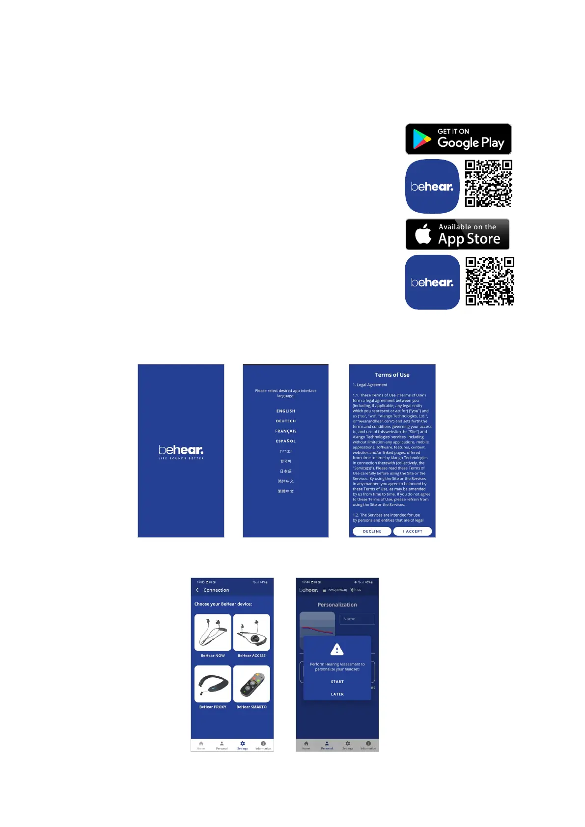 If no BeHear devices are connected to the phone, the app will continue to the Connection