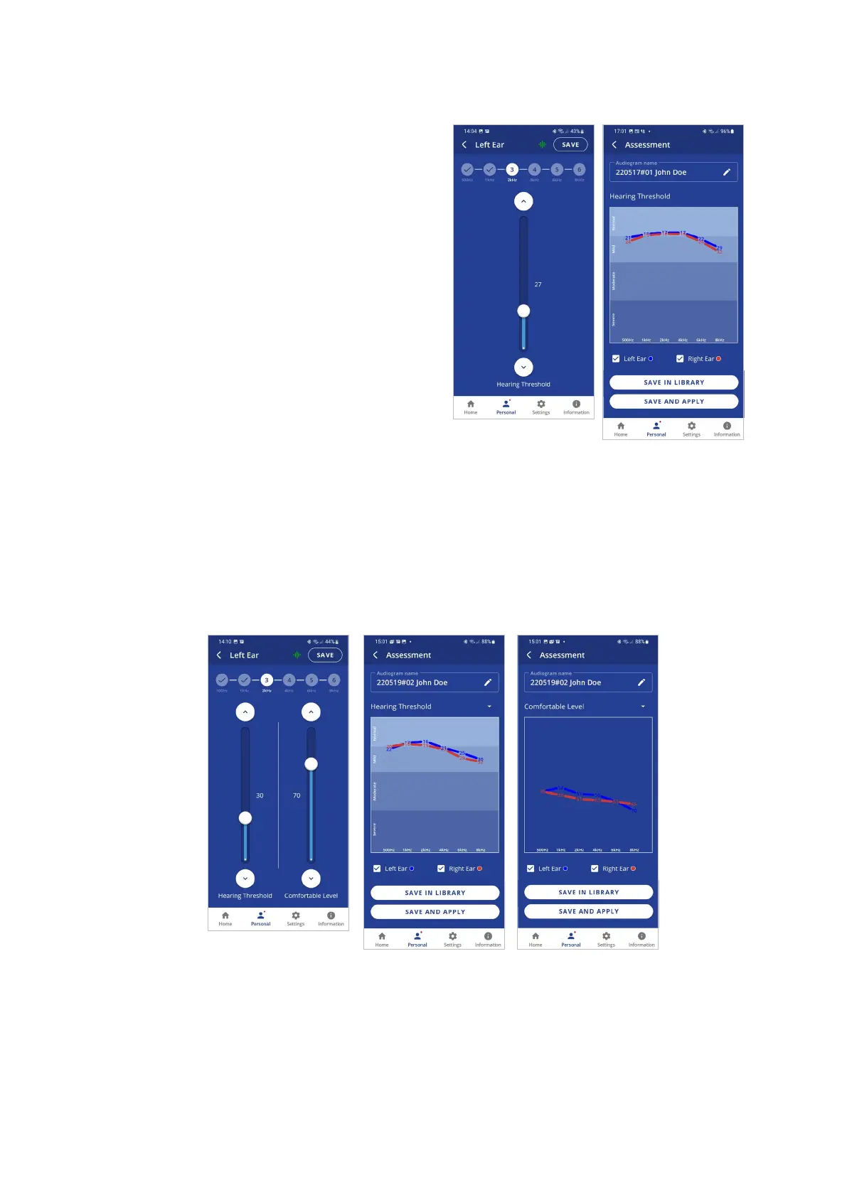 completing the assessment display two charts, one for Hearing Threshold and the other