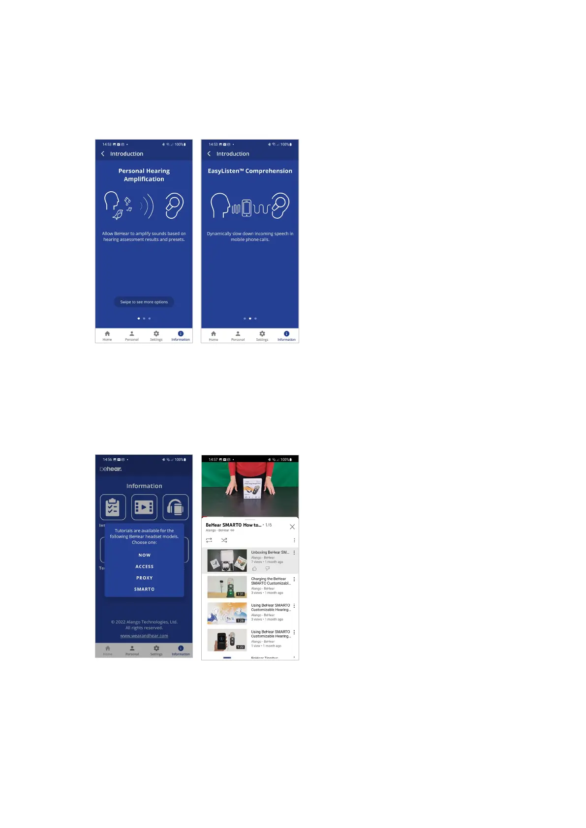 The introduction screens provide brief descriptions of the main BeHear ACCESS functions,