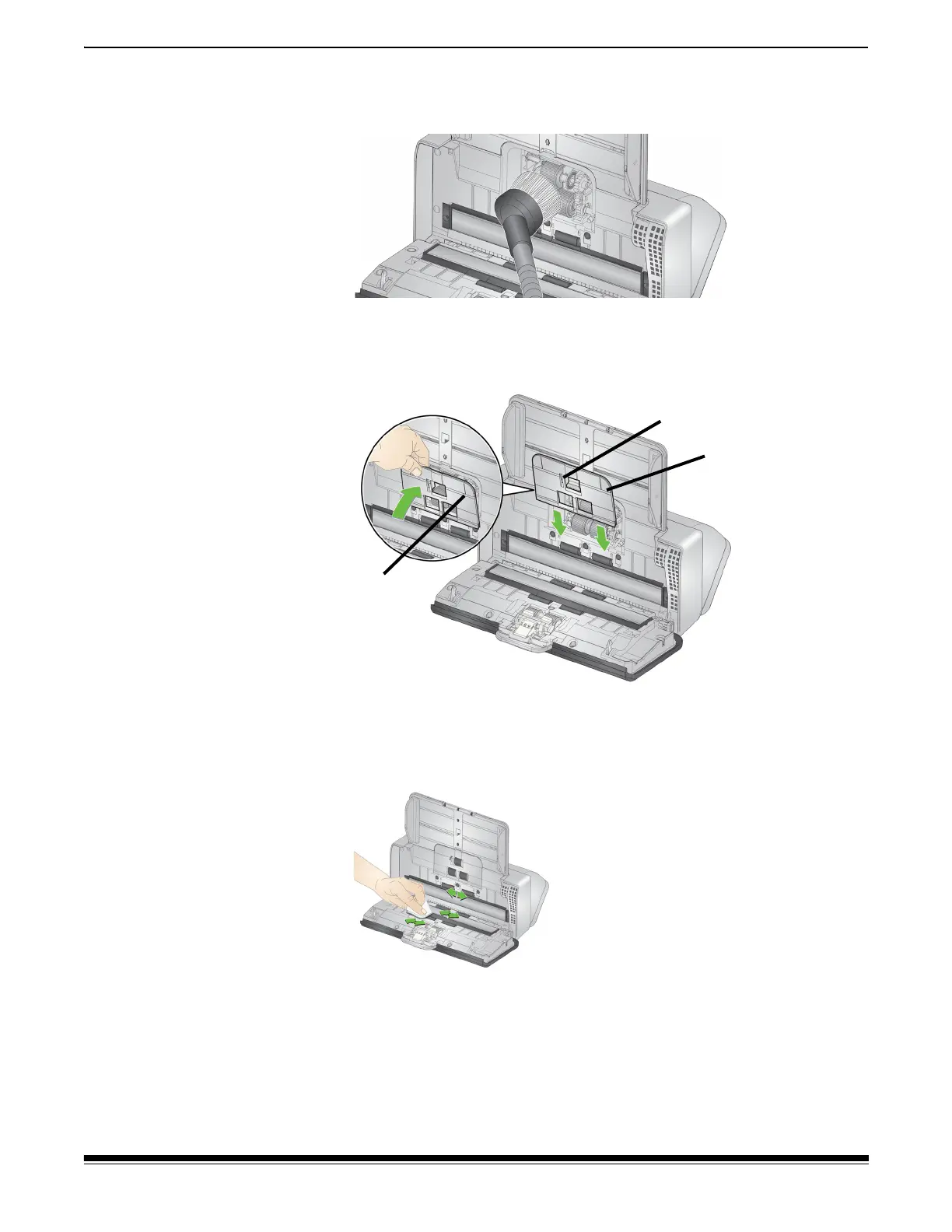 Use a roller cleaning pad to clean the transport rollers. Six are
