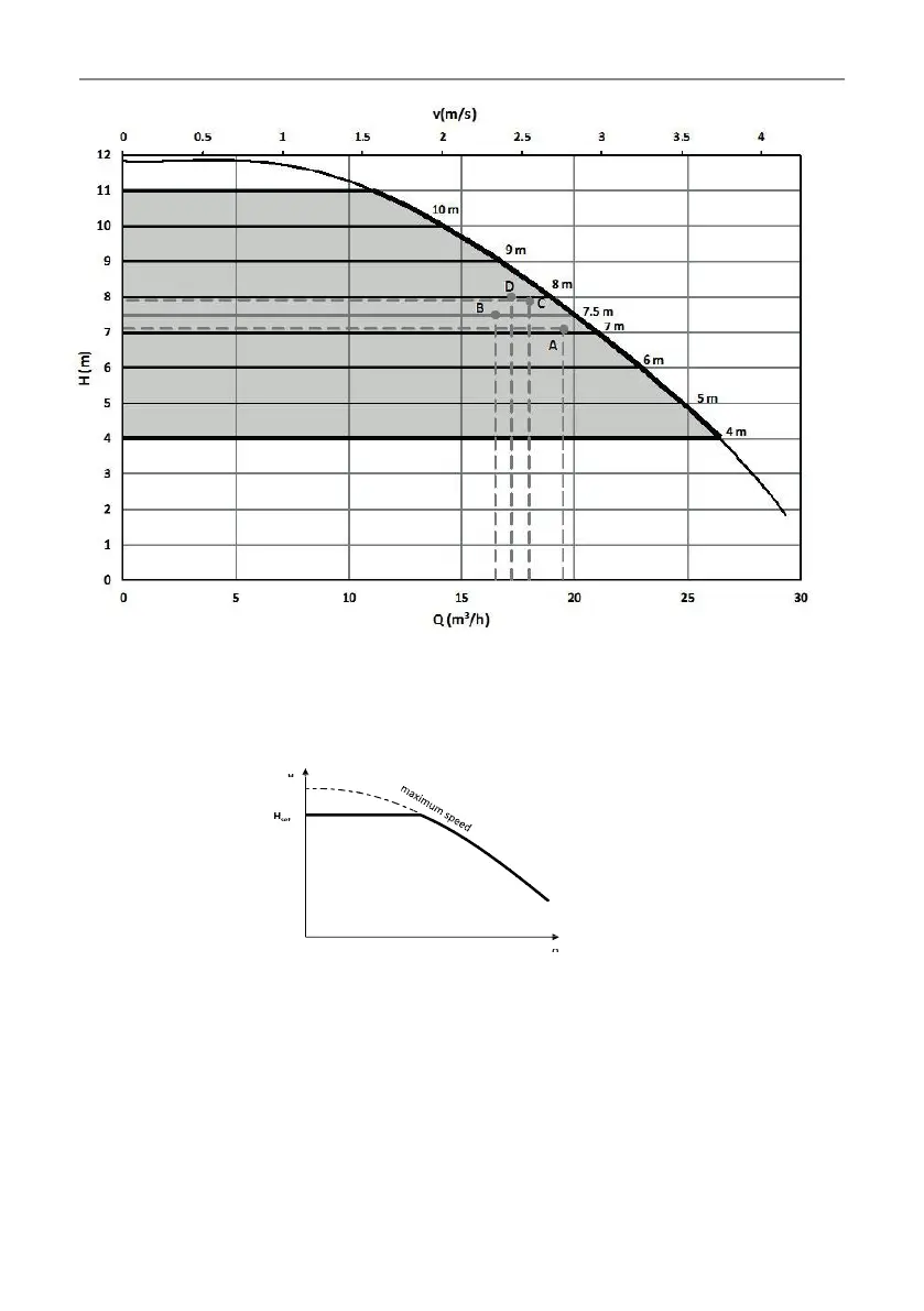 Örneğin; grafikteki A,B,C,D çalışma noktalarına göre seçilen pompalar için H