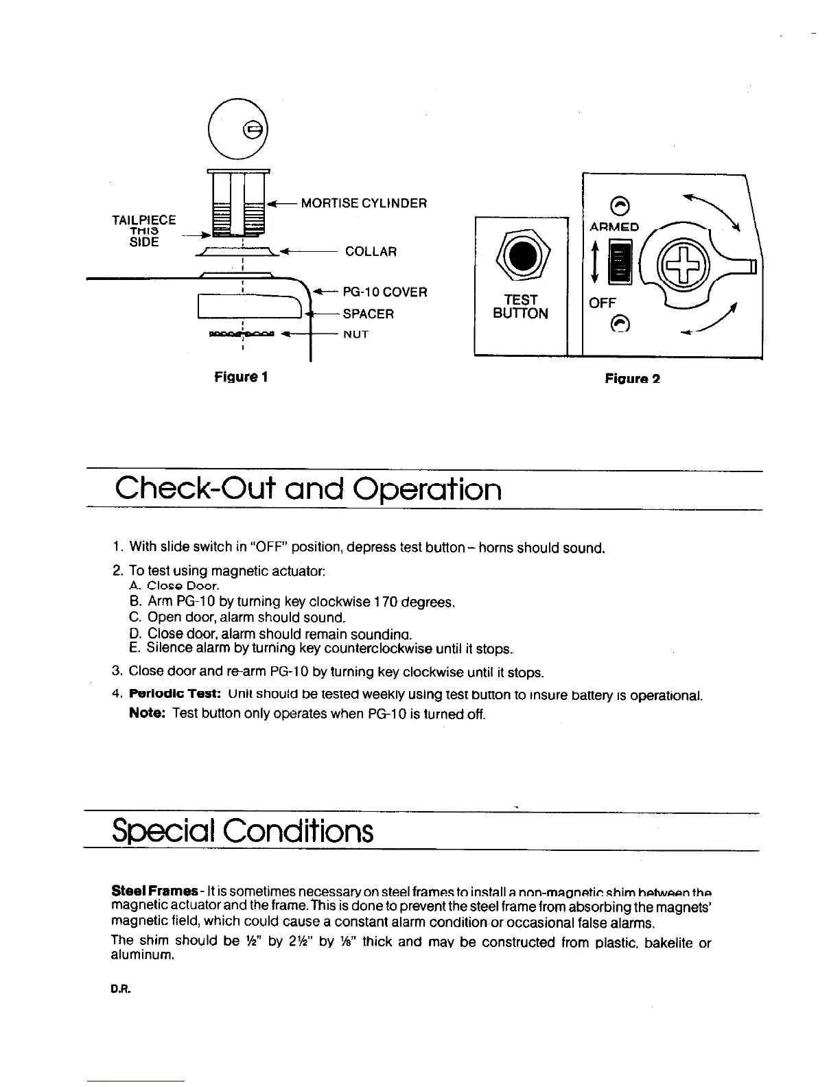 Alarm Lock PG-10 - Check-Out and Operation; Basic Test Procedure; Magnetic Actuator Test; Periodic Testing