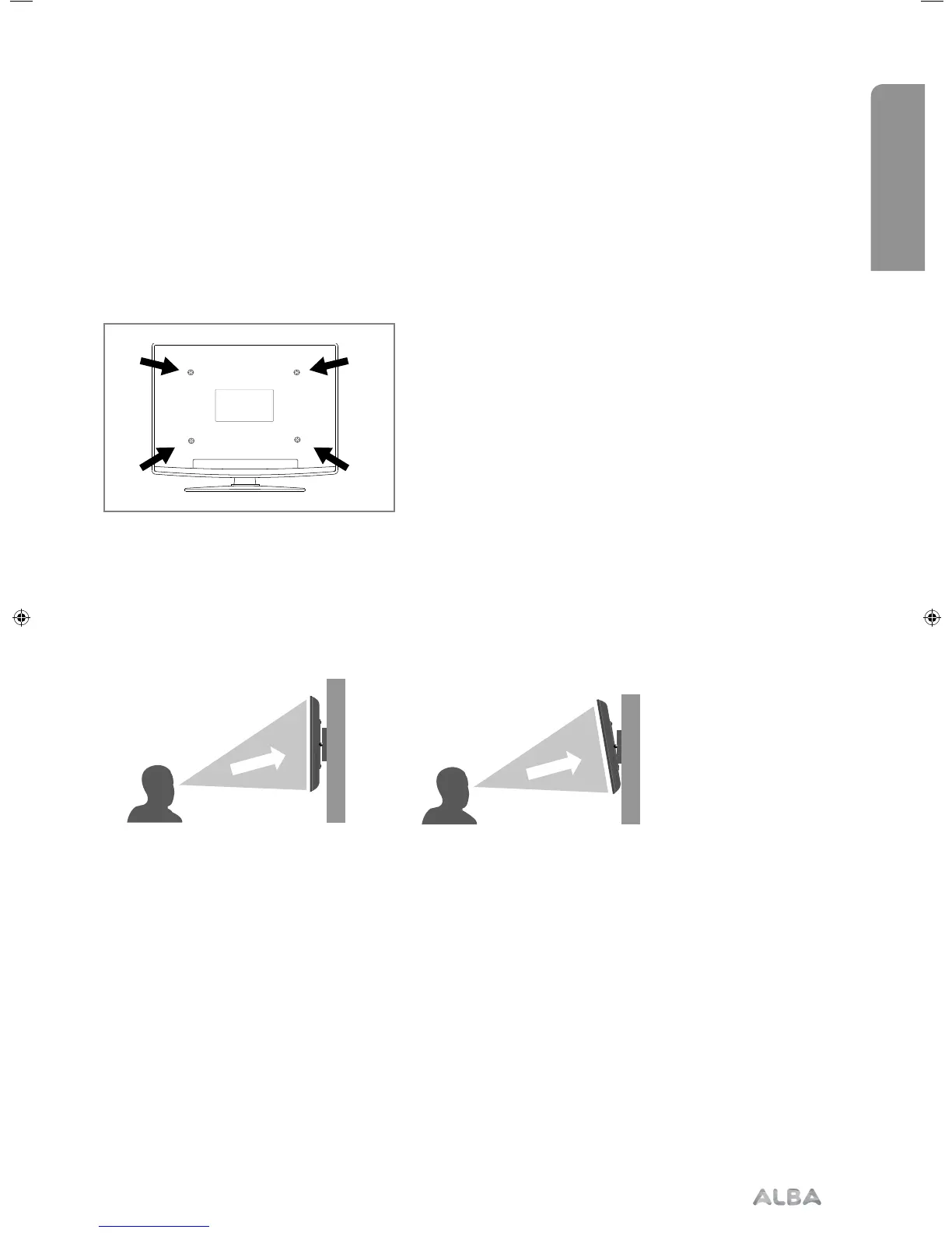 For optimum viewing, if wall mounting the TV higher than eye level, the TV should be tilted downwards so that the