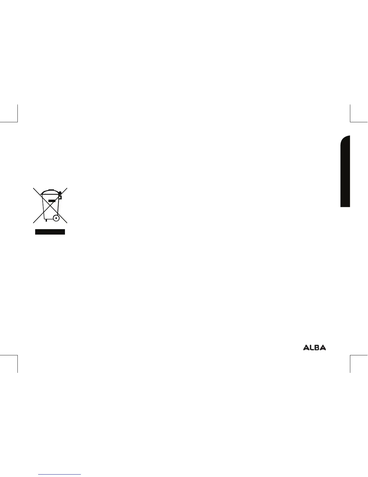 to human health. Therefore, you should not dispose of the Alba electronic device