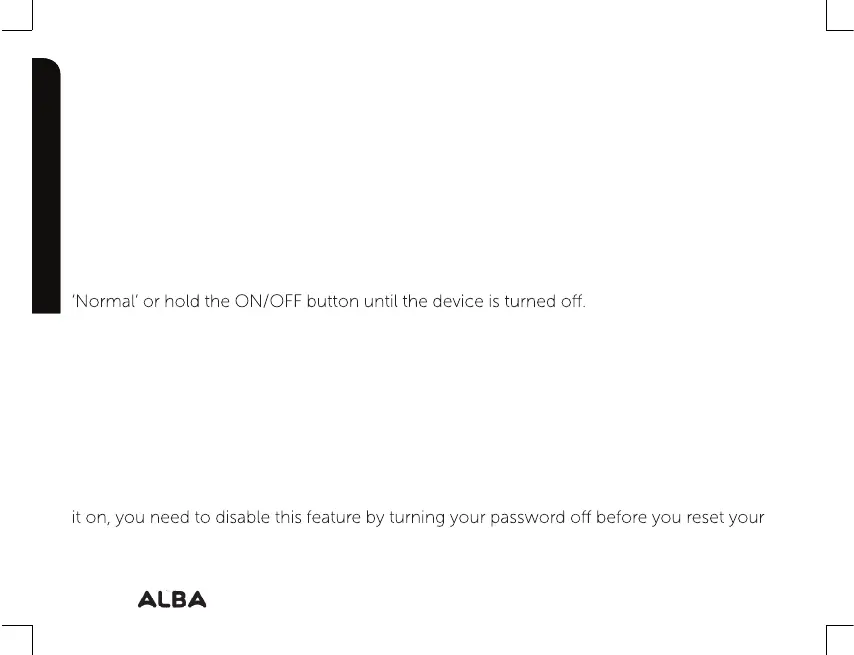 ON/OFF button to validate the choosen action. This will erase all your files, settings and