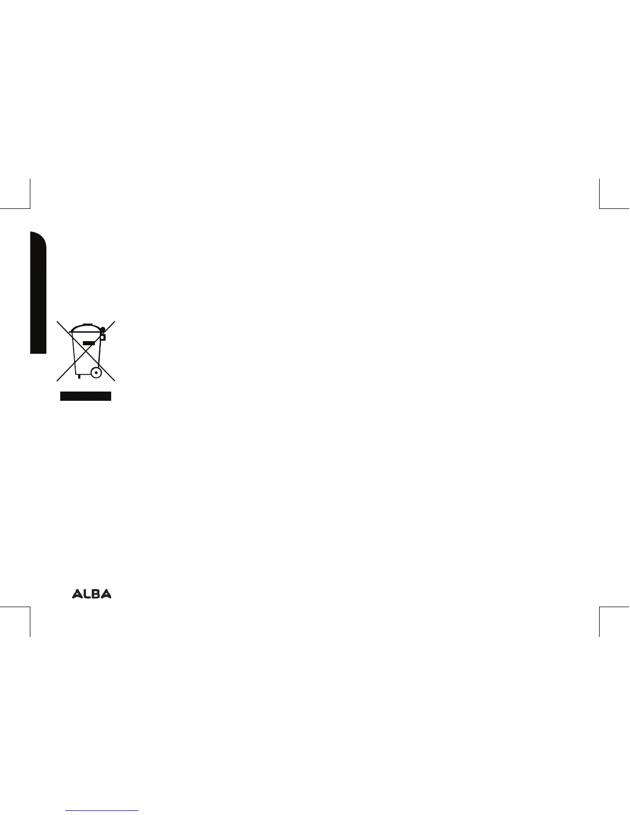to human health. Therefore, you should not dispose of the Alba electronic device