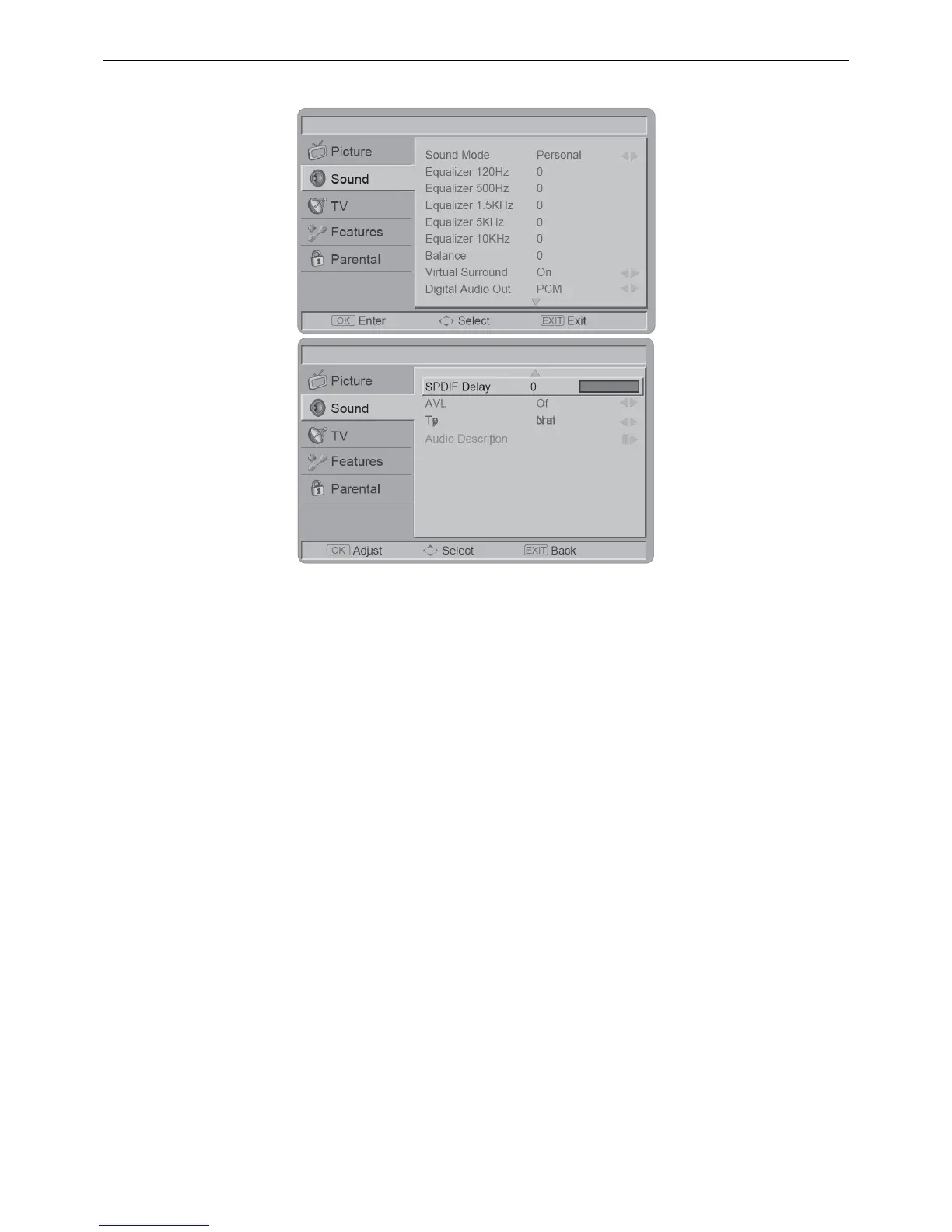 The Sound menu provides audio adjustment for user to modify the audio setting.