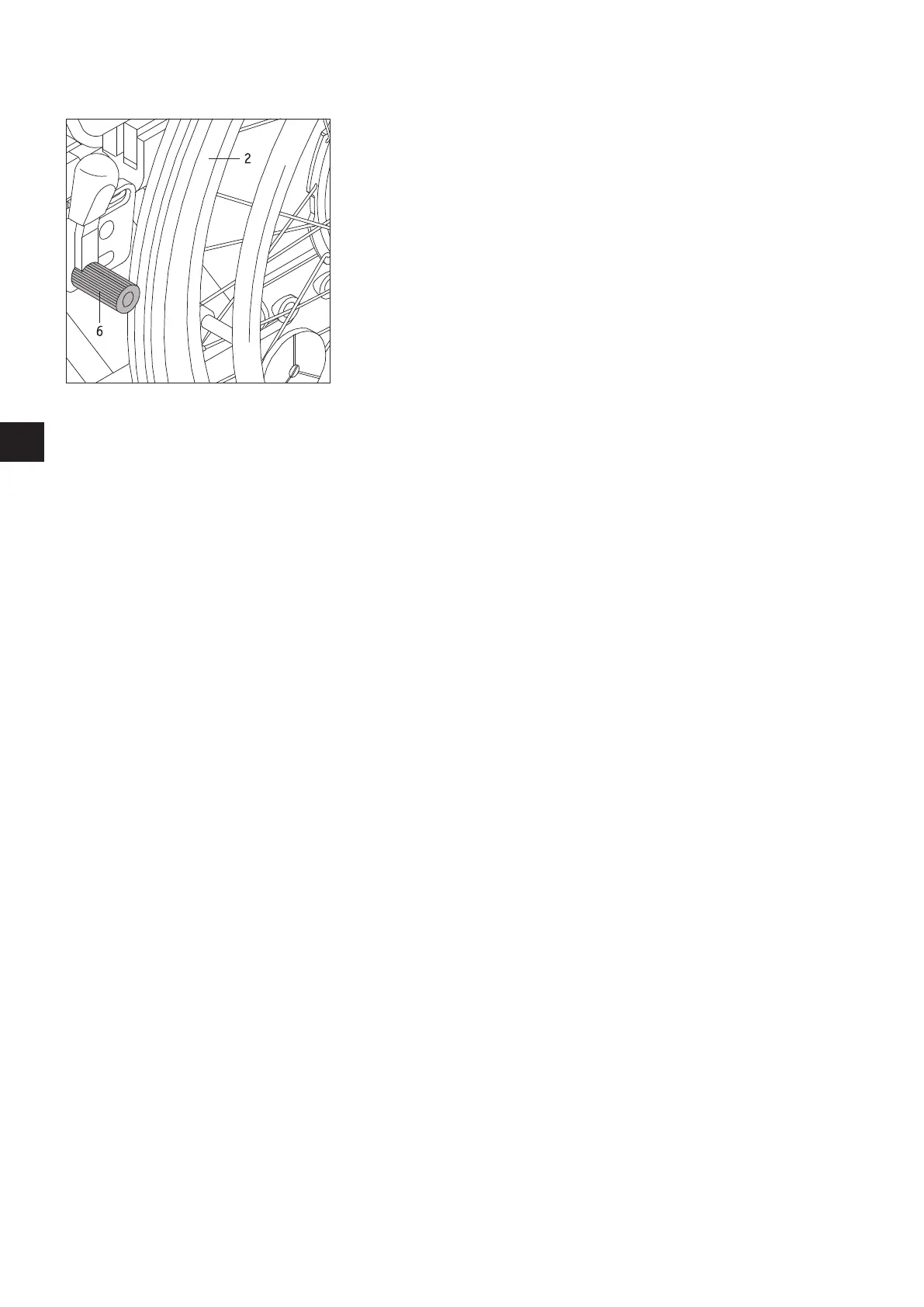 • Überprüfen Sie in regelmäßigen Abständen die rechtwinklige Ausrichtung der Vorderräder zum Boden, sowie deren Luftdruck. Beides