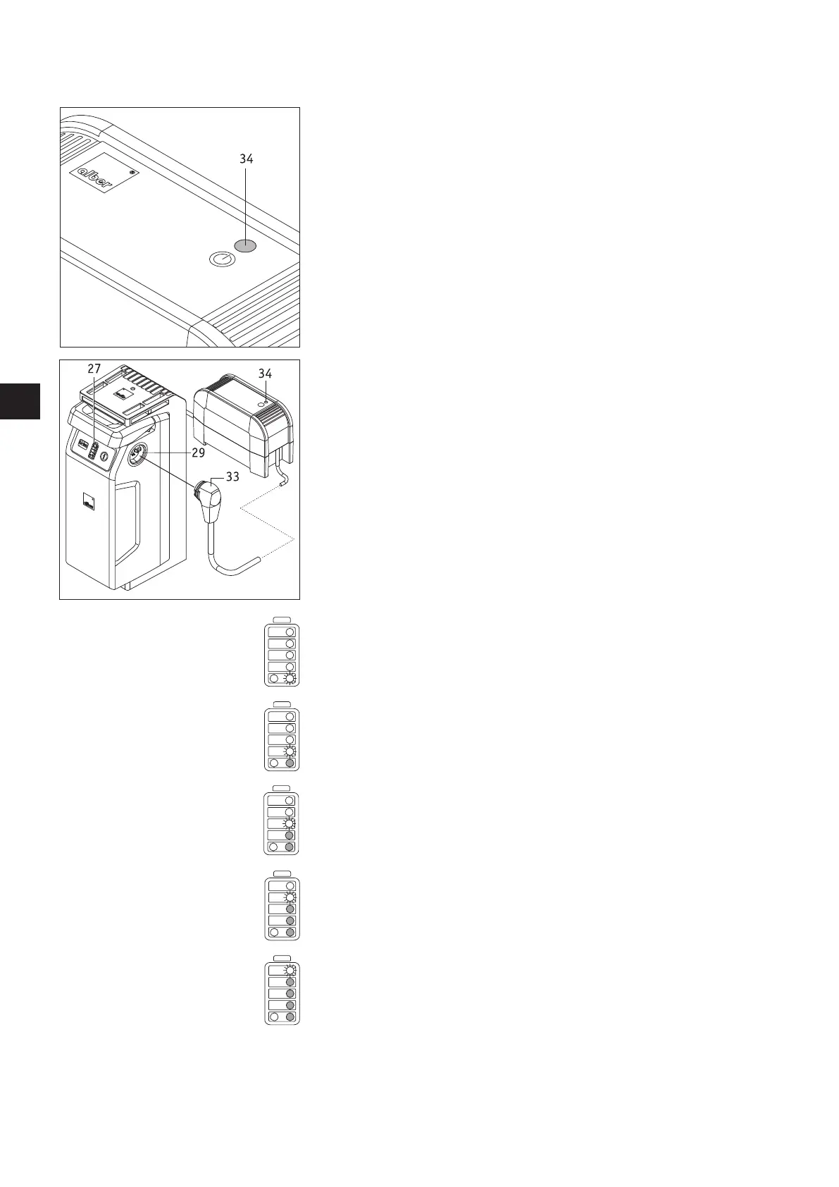 • Führen sie den Stecker des Ladegeräts [33] in eine der Buchsen [29] am Akku-Pack