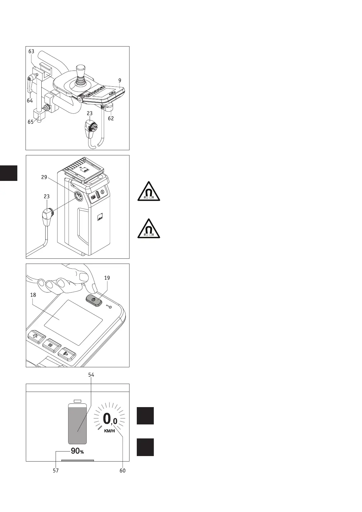 Zur Befestigung des Bediengeräts wurde an Ihrem Rollstuhl eine Aufnahme [65] ange-