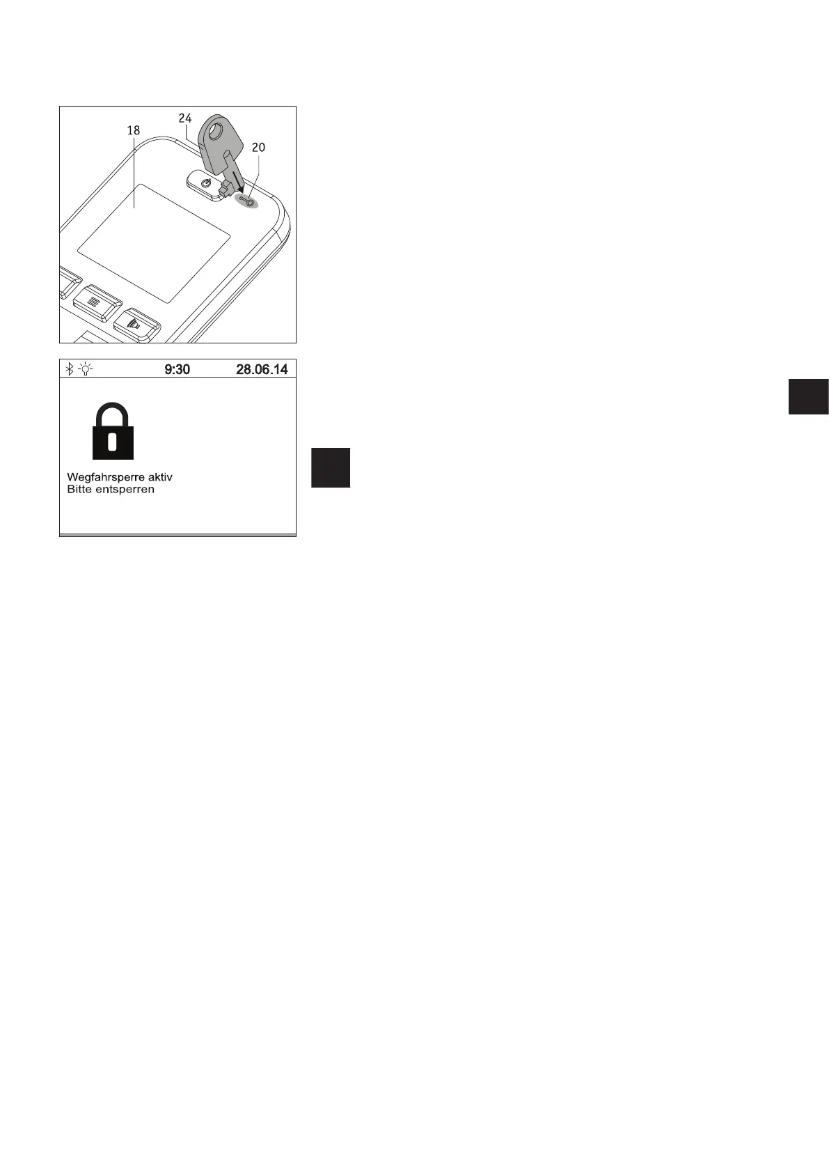 am Bediengerät. Hierdurch wird die Wegfahrsperre aktiviert und im Display die neben-