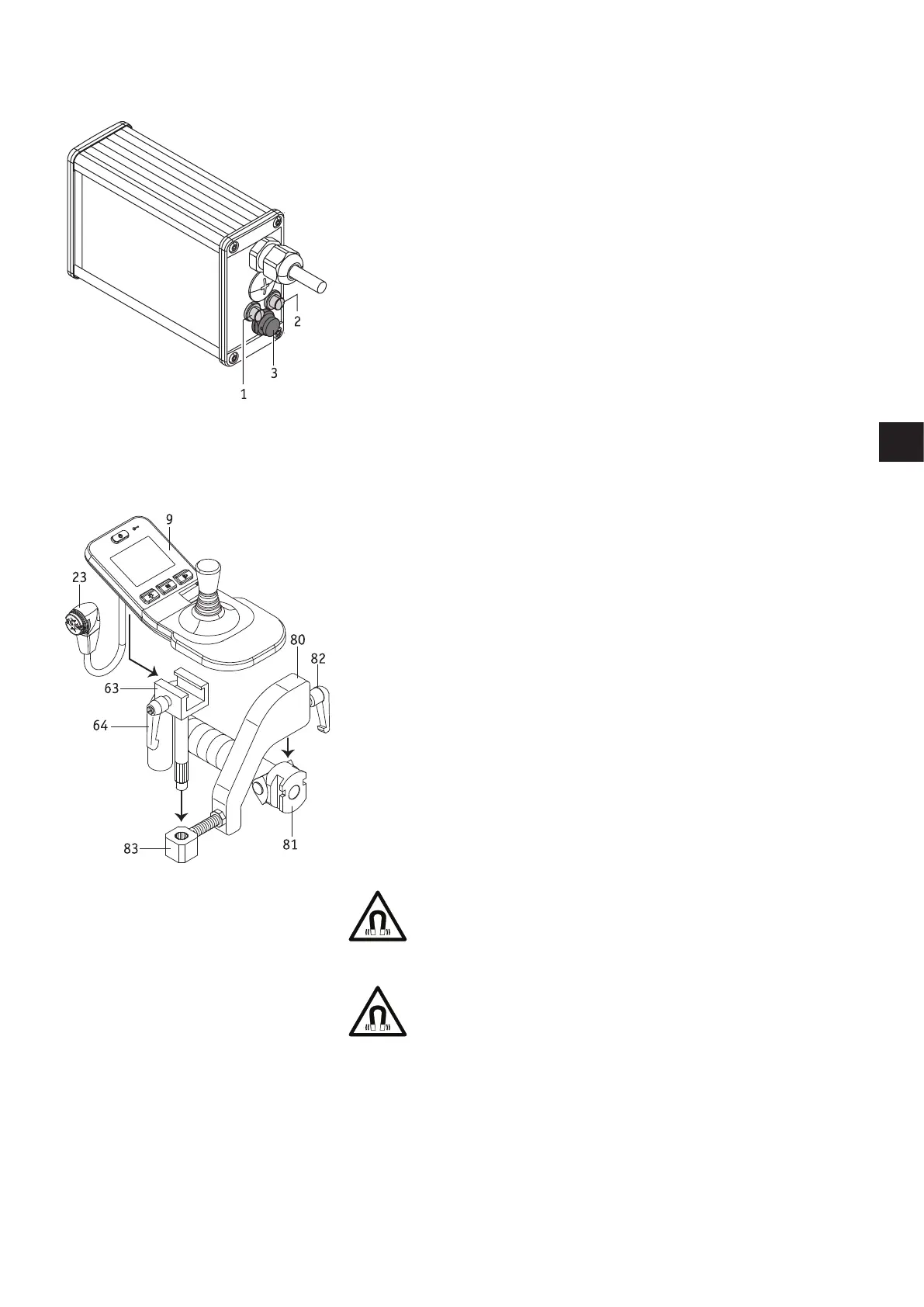 Der Stecker [23] des Bediengerätes ist magnetisch. Vermeiden Sie